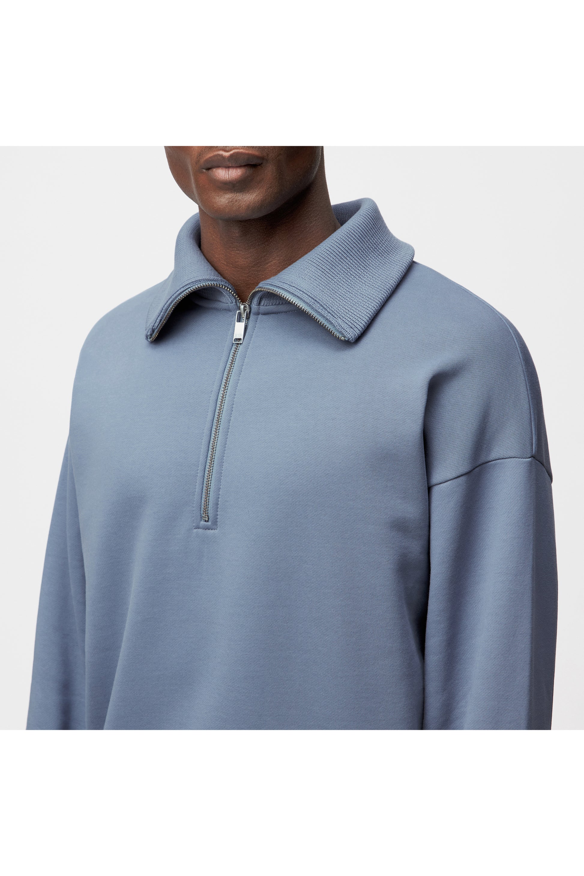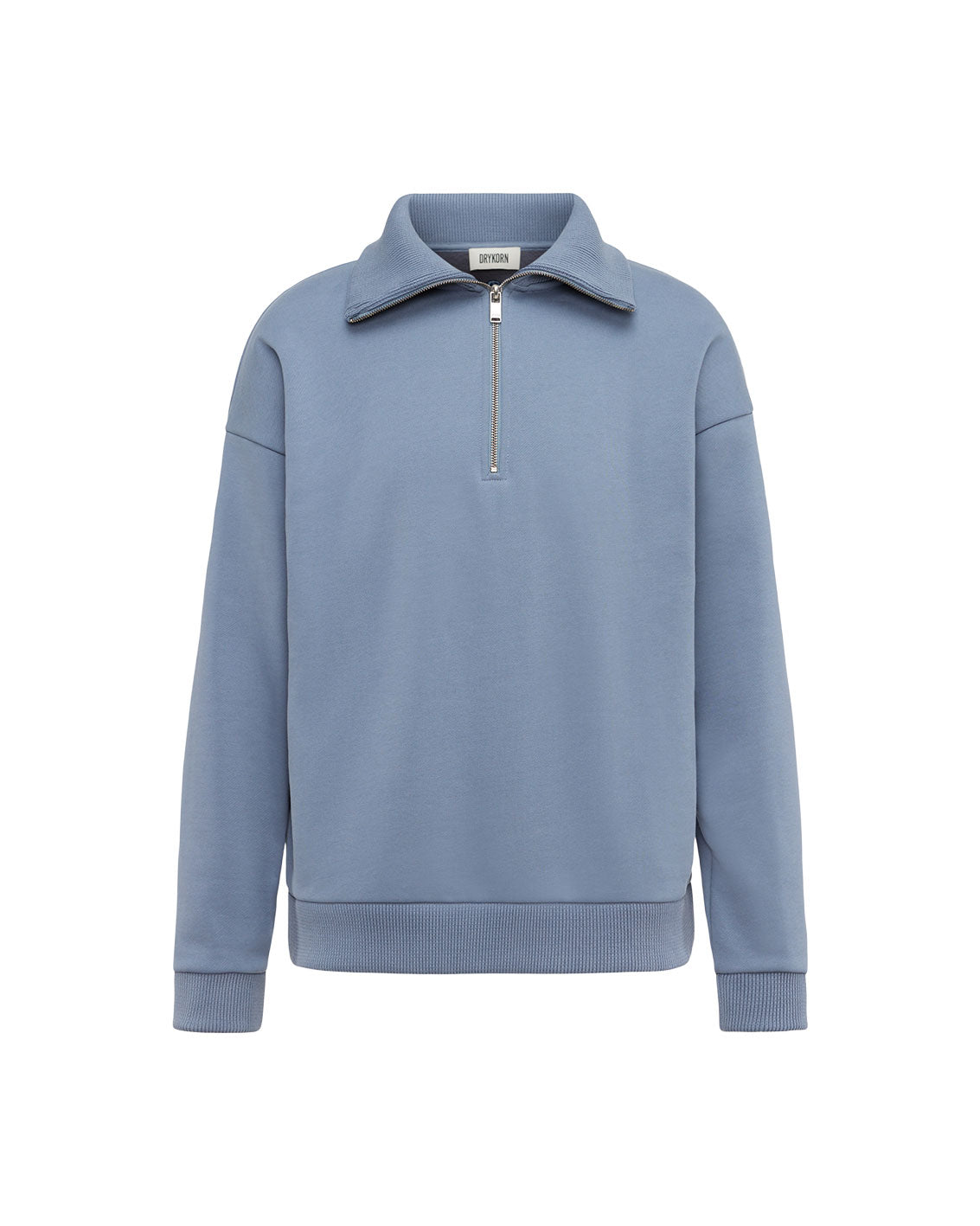 Le Kailep_d Sweatshirt de Drykorn revisite le pull sportif avec une coupe décontractée et un col montant zippé inspiré du troyer. Conçu en French Terry haut de gamme à l’intérieur gratté, il allie douceur et confort tout en garantissant une excellente tenue.