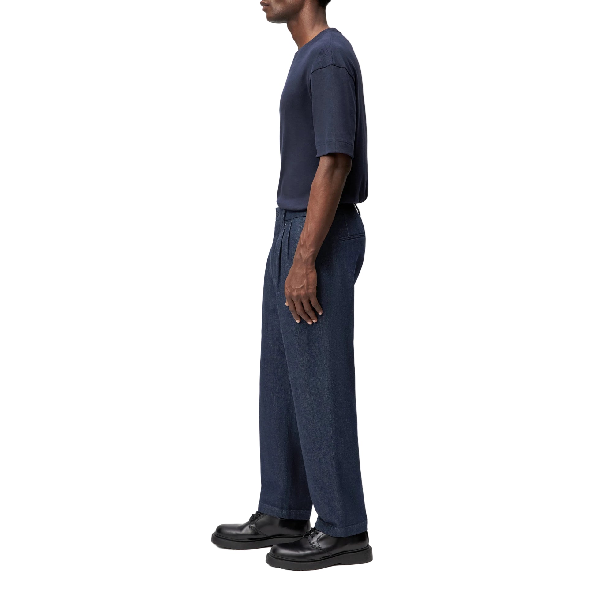 Le Karyko de Drykorn est un chino à l’esprit tailoring, pensé pour conjuguer confort et style contemporain. Sa coupe relaxed à taille mi-haute est rehaussée de pinces à l’avant et d’une jambe fuselée, offrant une silhouette fluide mais structurée.