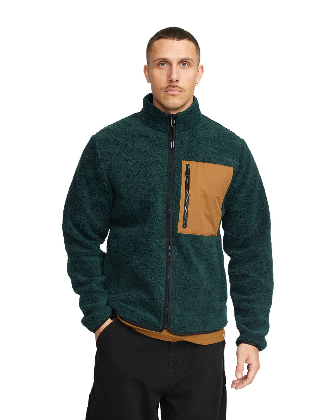 Idéale à porter seule ou en couche intermédiaire sous une veste coupe-vent, cette pièce polyvalente s’adapte à toutes les conditions climatiques. Son design moderne se distingue par une découpe poitrine caractéristique, une poche zippée contrastante en tissu brossé, ainsi qu’un col montant zippé intégral qui protège efficacement du froid.