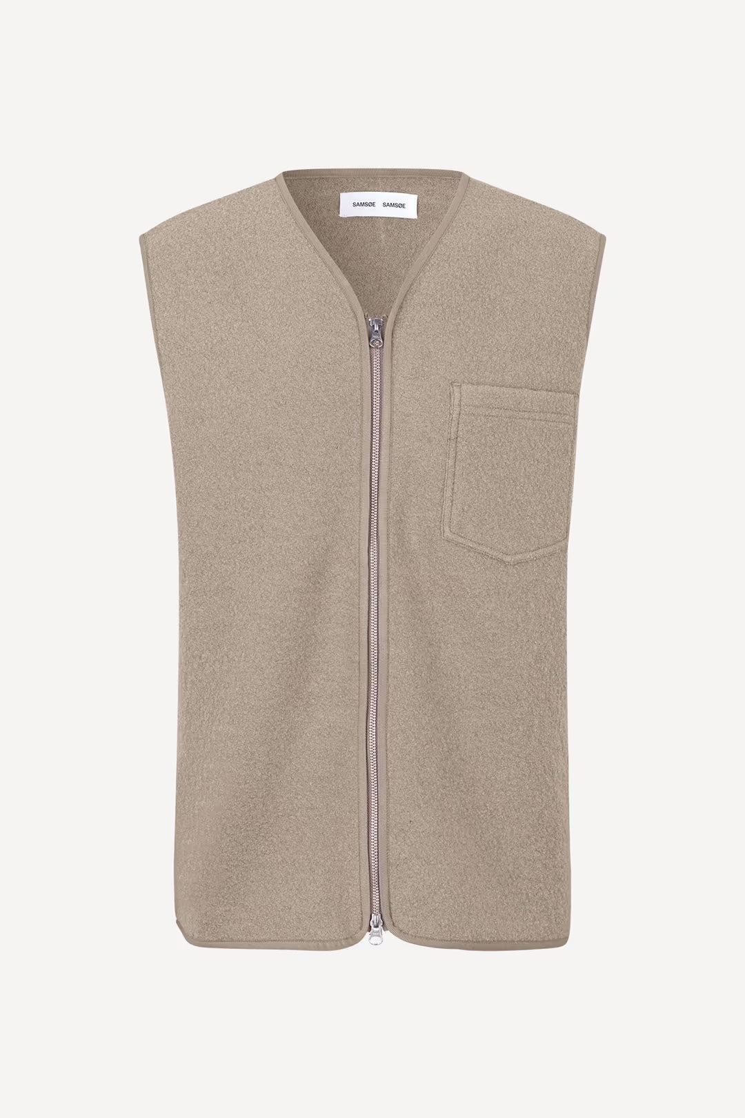 Ajoutez une touche moderne à votre vestiaire avec le gilet Sahannes Vest 14612 de Samsøe Samsøe. Conçue en feutre avec une coupe regular, cette pièce incontournable de la collection Harold allie confort et style. Sa fermeture zippée bidirectionnelle et ses poches latérales fendues en font une pièce pratique pour vos journées actives.